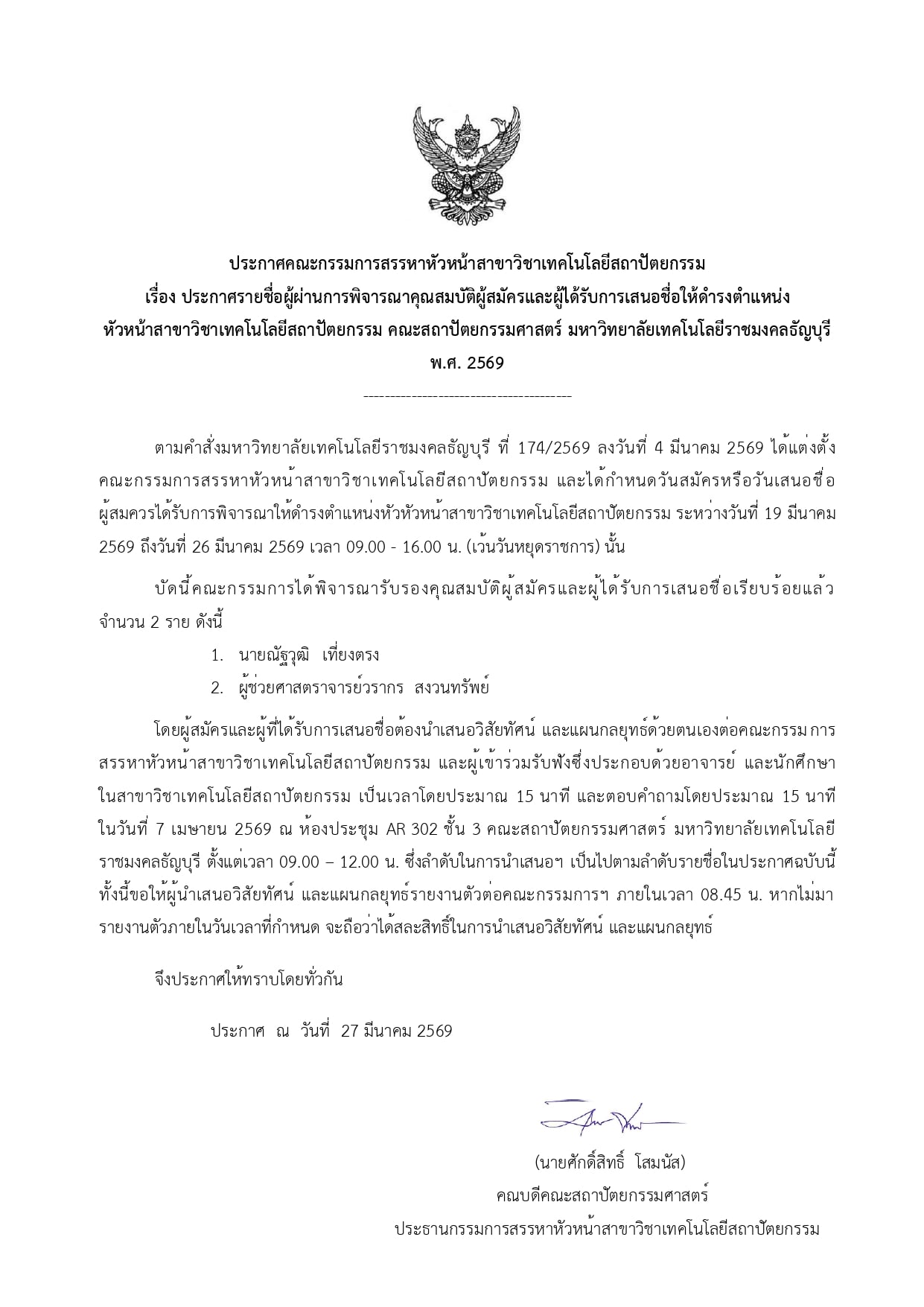 ประกาศคณะกรรมการสรรหาหัวหน้าสาขาเทคโนโลยีสถาปัตยกรรมMarch 19, 2026 ประกาศสรรหาหัวหน้าสาขาเทคโนโลยีสถาปัตยกรรม April 5, 2026 Categories ข่าวประชาสัมพันธ์ Tags PDF Title Download Share0 Related postsคณะสถาปัตยกรรมศาตร์ประกาศสรรหาหัวหน้าสาขาเทคโนโลยีสถาปัตยกรรมศาสตร์ March 19, 2026ประกาศคณะกรรมการสรรหาหัวหน้าสาขาเทคโนโลยีสถาปัตยกรรมRead moreMarch 19, 2026รางวัลการประกวดเวทีระดับโลก อาญาสถาปัตย์-ธัญบุรี คว้าไปรับรางวัลถึง 3 รางวัลRead moreDecember 8, 2025สถาปัตย์ฯ มทร.ธัญบุรี ร่วมเวทีนานาชาติ IWAH 2025 ณ อินโดนีเซีย : Weaving the Future: RMUTT Architecture Joins IWAH 2025 in IndonesiaRead more